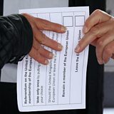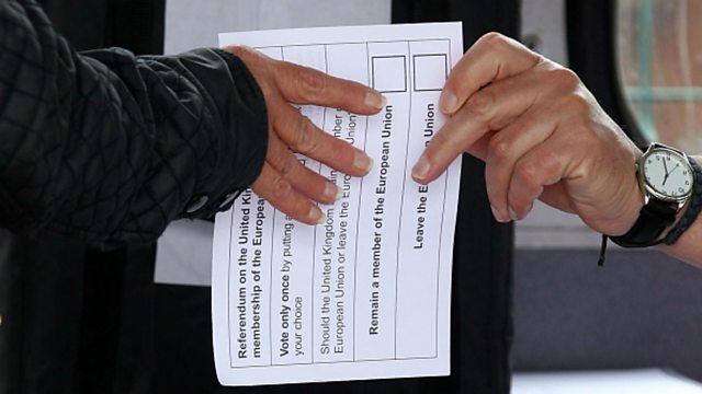 (Image: A volunteer hands an unmarked ballot paper to a voter in Hull, northern England, on 23rd June 2016. Credit: AFP/Getty Images/Lindsey Parnaby)