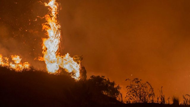 (Image: Palm trees burn in Southern California's 'Lilac Fire'. Credit: David McNew/Getty Images)