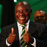 Image: African National Congress (ANC) President, Cyril Ramaphosa, at City Hall in East London. Credit: Getty Images.