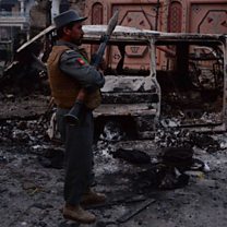 (Image: Afghan security forces inspect the site of attack on British charity Save the Children office in Jalalabad on 24th January 2018. Credit: Noorullah Shirzada/AFP/Getty Images)