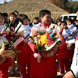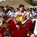 (Image: Members of North Korean women's ice hockey team (left) are welcomed by members of the South Korean team (right) as they arrive at South Korea's national training centre in Jincheon, South Korea on 25TH January 2018. Credit: AFP/Song Kyung-Seok)