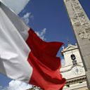 (Image: An Italian flag waves in front of the Montecitorio palace in downtown Rome. Credit: Reuters/Tony Gentile)