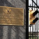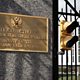 Picture: A brass plaque written in English and Cyrillic at the front gate of the Embassy of the Russian Federation March 26, 2018 in Washington, DC. Credit: Getty Images.