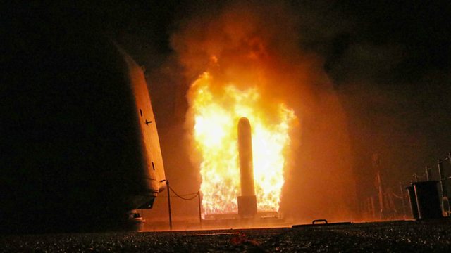 US-led air strikes target Syrian weapons sites after a suspected chemical attack by the Assad government. Russia calls them "an act of aggression". We hear reaction from around the world.