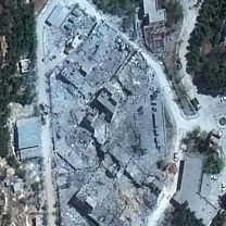 (Picture: Satellite image of Barzah Research and Development Center facility in Damascus, Syria, seen on April 15th 2018 a day after it was struck by U.S. and coalition operations. Credit: DigitalGlobe)