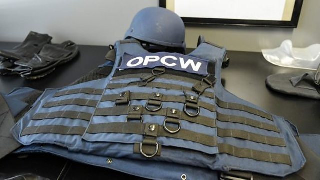 Picture: The OPCW at The Hague has shown the kind of bullet-proof vests and helmets used by its staff on missions. Credit: AFP.