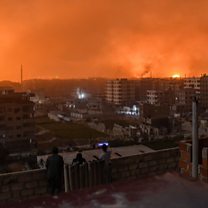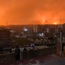 (Image: Explosions in skyline of a southern district of Damascus, Credit: RAMI AL SAYED/AFP/Getty Images)