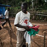 (Photo: A health worker cleans equipment at an Ebola quarantine unit, Credit: JOHN WESSELS/AFP/Getty Images)