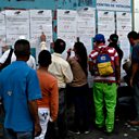 (Picture: Venezuelans look for their names moments before casting their vote at a polling station during presidential elections in Caracas. Credit: Getty Images)