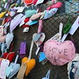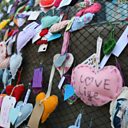(Image:A fence is covered in hearts, offerings as a memorial following the Manchester Arena bombing, Credit:PAUL ELLIS/AFP/Getty Images)