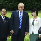 Picture: US President Donald Trump poses with North Korean envoy Kim Yong Chol outside the White House. Credit: AFP Photo.