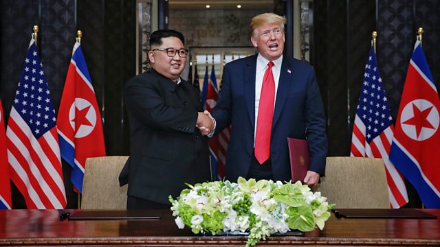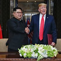 The US President Donald Trump has met the North Korean leader Kim Jong-un in Singapore. It is the first time the sitting leaders of the two countries have met. After a year of exchanging threats the two men shook hands before going into talks. After the summit the leaders signed a "comprehensive" document, promising a new relationship between the nations, and committing North Korea to work towards "the complete denuclearisation of the Korean peninsula".