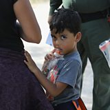Picture: Central American asylum seekers wait as U.S. Border Patrol agents take them into custody. Credit: Getty Images.