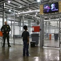 (Photo: A boy from Honduras watches a movie at a detention facility. Credit: Getty Images)
