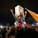 Photo: Supporters of Recep Tayyip Erdogan's AK Party react to election results in Taksim Square, Istanbul. Credit: REUTERS/Kemal Aslan