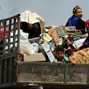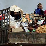 (Photo: People ride on a truck with their belongings in Deraa countryside. Credit: Reuters)