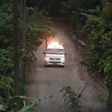(Photo: An ambulance leave the Tham Luang cave area as divers evacuated some of the 12 boys and their coach trapped at the cave. Credit: Getty Images)