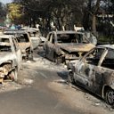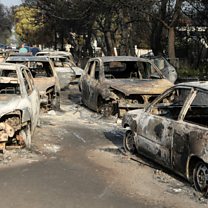(Photo shows:Burned cars remain in the seaside resort of Mati, Greece. Photo credit: EPA)