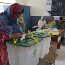 (Picture: A woman casts her vote at a polling station in Islamabad Credit: AFP)