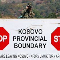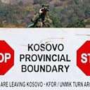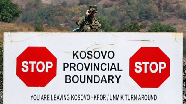 Photo: A German KFOR soldier stands guard at the Jarinje border crossing between Serbia and Kosovo in 2011 Credit: SASA DJORDJEVIC/AFP/Getty Images