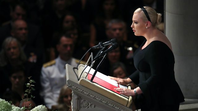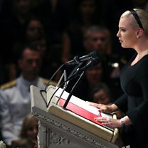 (Image: Meghan McCain speaking at her father's funeral. Credit: Getty Images)