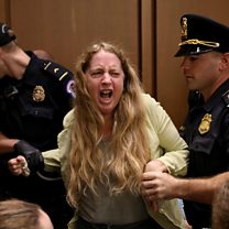Protests disrupt confirmation hearing for US President Trump's Supreme Court nominee.