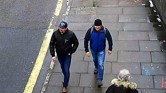 Picture: a CCTV image of two Russian nationals suspected of involvement in the Novichok poisonings. Credit: Met Police.