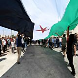 Picture: Syrian protestors demonstrate against the regime and its ally Russia in the rebel-held city of Idlib. Credit: AFP.