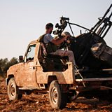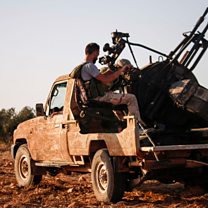 Picture: A Syrian rebel fighter mans a anti-aircraft gun loaded on the back of a pickup truck Credit: AFP/Getty Images