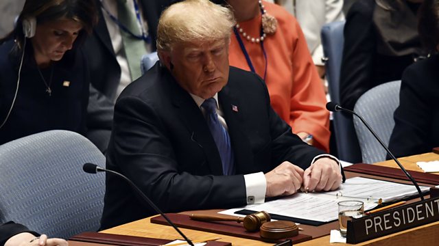 Today at the UN, President Trump accused China of interfering in the forthcoming US elections, but did not present any proof. The Chinese foreign minister denied the charges. It was the US president's first time chairing the UN Security Council. Also on the programme, new research suggests that almost 400,000 people died as a result of Civil War in South Sudan. The original UN estimate was 50,000 deaths. We hear from one of the authors. And an investigative website publishes what they think is the real name of one of the two Russian men accused of poisoning the Skripals in the English town of Salisbury. He also claims that Russian security services had "direct influence" on staff in the British embassy involved in issuing visas to "Boshirov" and "Petrov".