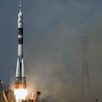 Image: A Soyuz-FG rocket booster carrying the Soyuz MS-09 spacecraft. Credit: Sergei Savostyanov/TASS/Getty Images.