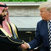(Photo: US President Donald Trump shakes hands with Crown Prince Mohammed bin Salman in the White House in March 2018. Credit: Mandel Ngan/AFP/Getty Images).