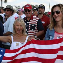 (Photo: Two women hold an American flag as they queue for a rally by President Donald Trump in Florida ahead of the mid-term elections. Credit: Getty Images)