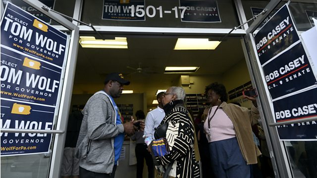 The US mid-term elections in four days' time will help define the rest of Donald Trump's presidency. Many left-wing Democrats say it's a chance to rebuild their party without the big money funding and centrism of the past. Others say the opposite - to win over Trump supporters they must be moderate and cautious, and if they win the House they should co-operate with him on some issues. We hear from the state of Pennsylvania.
