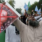 Picture: A Pakistani supporter of the Ahle Sunnat Wal Jamaat, a hardline religious party, holds an image of Christian woman Asia Bibi during a protest rally following the Supreme Court's decision to acquit her of blasphemy, in Islamabad on November 2, 2018. Credit: Getty Images.