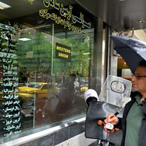 (Photo: A man looks at a board at the window of an exchange bureau in Tehran. Credit: Fatemeh Bahrami/Getty Images)