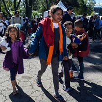 (Photo: Migrants from Central American countries - mostly Hondurans - heading in a caravan to the US, arrive to a temporary shelter in a sports centre, in Mexico City where they expect to ask for documents to be able to transit Mexican territory. Credit: Alfredo Estrella/AFP)