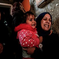 (Image: Relatives of one of the seven Palestinians killed during an Israeli special forces operation in the Gaza Strip, mourn during his funeral. Credit: Getty Images)