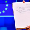 (Photo: European Council President Donald Tusk holds the 'draft agreement of the withdrawal of the UK from the EU. Credit: Getty Images)