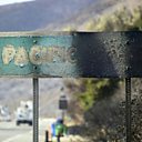 (Picture: A fire-damaged Pacific Coast sign remains standing along the Pacific Coast Highway amid the blackened and charred hills from the Woolsey Fire. Credit: FREDERIC J. BROWN/AFP/Getty Images)
