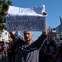 Image: Local residents hold a demonstration against the Central American migrants moving towards the United States and staying in Tijuana. Credit: Guillermo Arias/AFP/Getty Images.