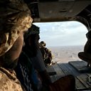 (Photo: Saudi Coalition Forces in a helicopter over the Yemeni Desert Credit: Reuters)