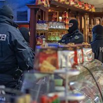 (Picture: Police raid a cafe in Germany as part of their operation against the 'Ndrangheta mafia. Credit: AFP)