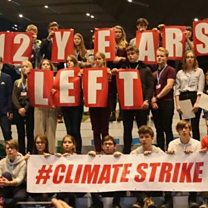 (Photo: Young participants of the #CLIMATE STRIKE demonstration during the COP24 summit at the "Spodek" multipurpose arena complex in Katowice, Poland. Credit: KIARA WORTH/IISD/ENB)