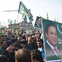 (Photo: Hundreds of supporters of Nawaz Sharif gathered at the court in Islamabad for the verdict. Credit: AFP)