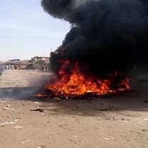 (Picture: A bonfire is lit along the street during protests against price increases in Atbara, Nile River state in northeastern Sudan. Credit: Reuters)