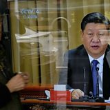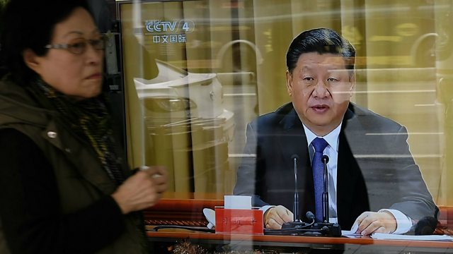 (Picture: A woman walks past a television in New Taipei City showing China"s leader Xi Jinping making a speech. Credit: Sam Yeh / AFP / Getty Images)