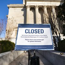 (Picture: A sign alerts visitors to the closure of the National Archives in Washington. Credit: EPA/Lo Scalzo)