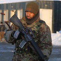 (Photo: An Afghan security officer secure the area of a collapsed building of National Directorate of Security in central Maidan Wardak province, Afghanistan on 21 January, 2019. Credit: Sabawoon/Anadolu Agency/Getty Images)