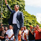 (Picture: Opposition leader Juan Guaidó gestures as he arrives to a rally against the government of Nicolás Maduro in the streets of Caracas. February 2, 2019. Credit: Marco Bello/Getty Images)